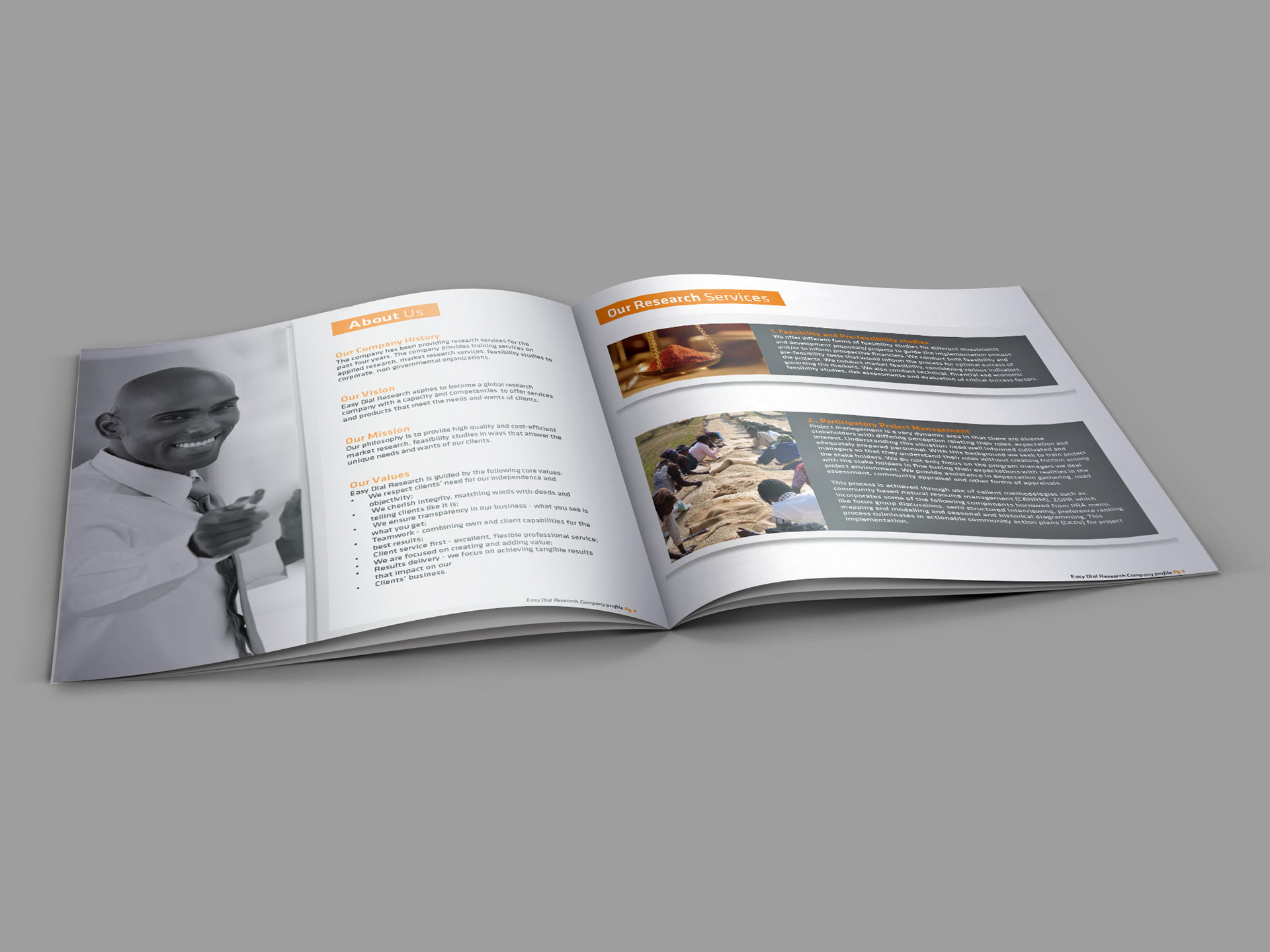 A Company profile Concept for a research firm.